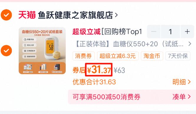 31.3亓 鱼跃健康之家官旗 550血糖仪 20试纸 采血针 赠送:采血笔 收纳盒 电池好单发报员2025年12月15日 09:120举报 31.3亓【鱼跃健康之家官旗】550血糖仪 20试纸 采血针赠送:采血笔 收纳盒 电池https://m.tb.cn/h.724kbTF复制文案