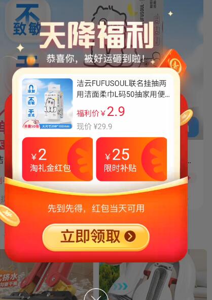2.9亓速叠限时礼金 洁云挂抽洁面柔巾50抽