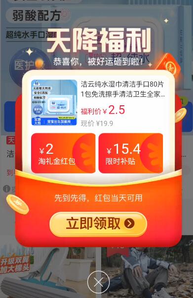 2.5亓速叠限时礼金 洁云纯水湿巾80片