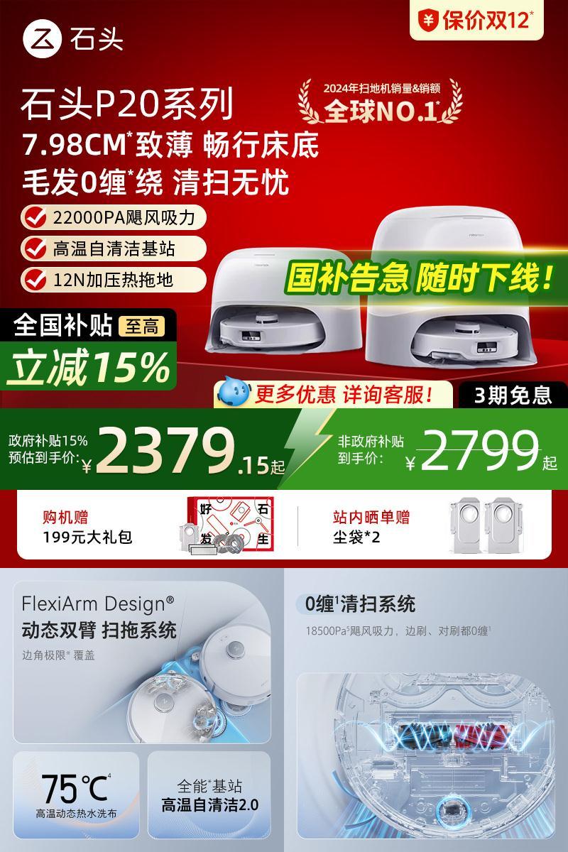 5199元 石头智能电器旗舰店 国补15% 石头扫地机器人P20Pro/ultra/ultraplus扫洗拖一体机 好单发报员 2025年12月15日 11:01 0 举报 5199元 石头智能电器旗舰店【国补15%】石头扫地机器人P20Pro/ultra/ultraplus扫洗拖一体机https://m.tb.cn/h.72MKQLn 复制文案