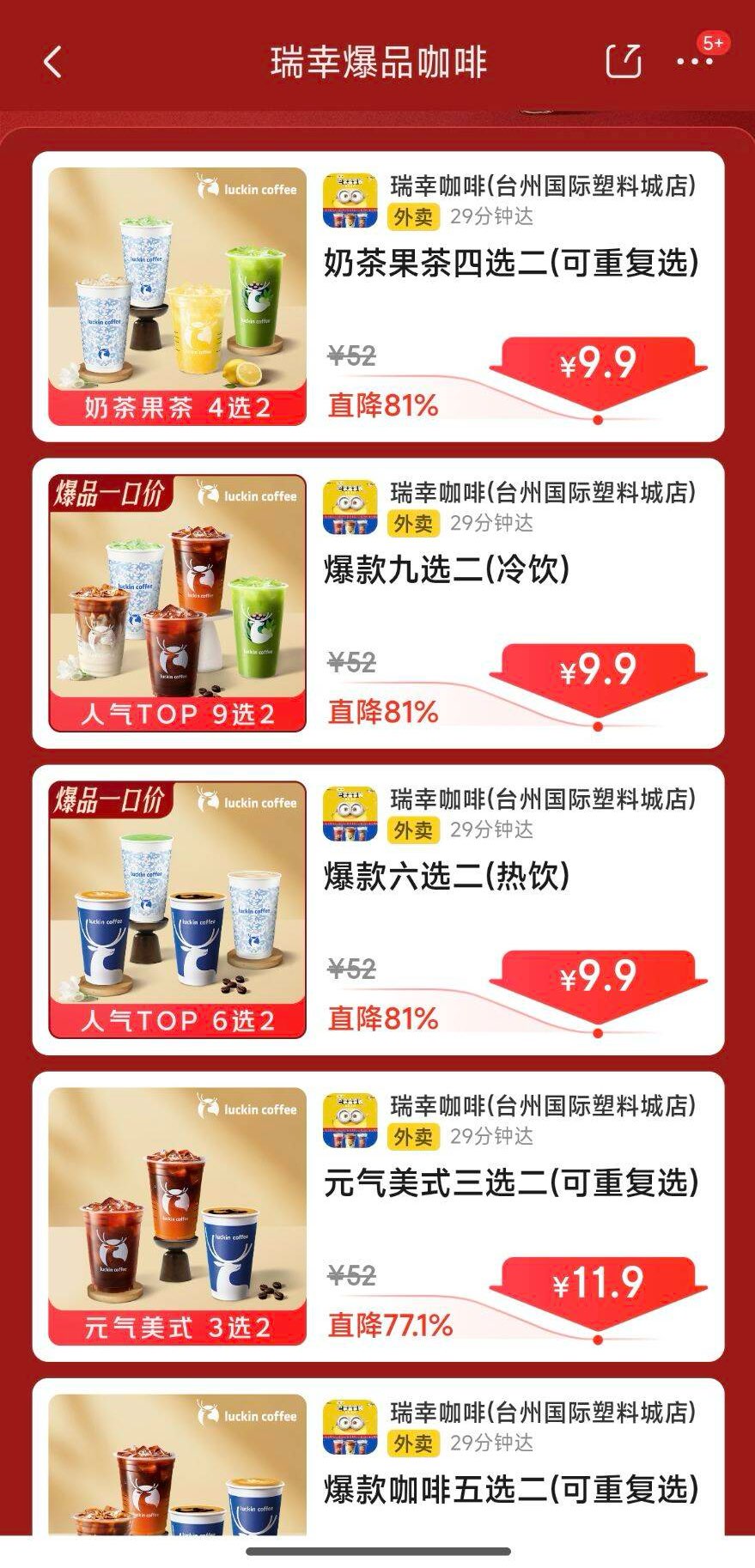 瑞幸咖啡 2杯,9.9