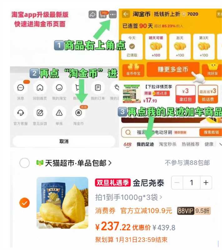 商品右上角3个点,选淘金币
