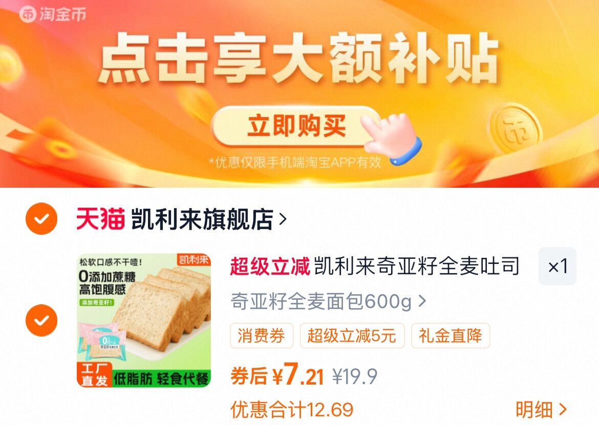 下拉详情拍 7亓 凯利来 奇亚籽全麦面包600g 好单发报员 2025年12月15日 17:06 0 举报 下拉详情拍 7亓凯利来 奇亚籽全麦面包600ghttps://m.tb.cn/h.72XBnPB 复制文案