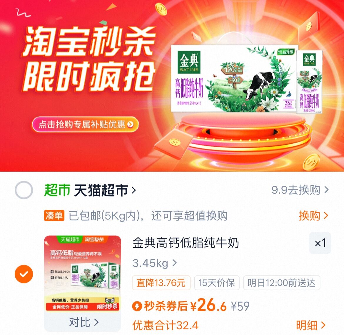 下拉详情拍,26.6亓 金典 高钙低脂纯牛奶250ml*12盒好单发报员2025年12月17日 17:100举报 下拉详情拍,26.6亓金典 高钙低脂纯牛奶250ml*12盒https://m.tb.cn/h.7dKL8Tv复制文案