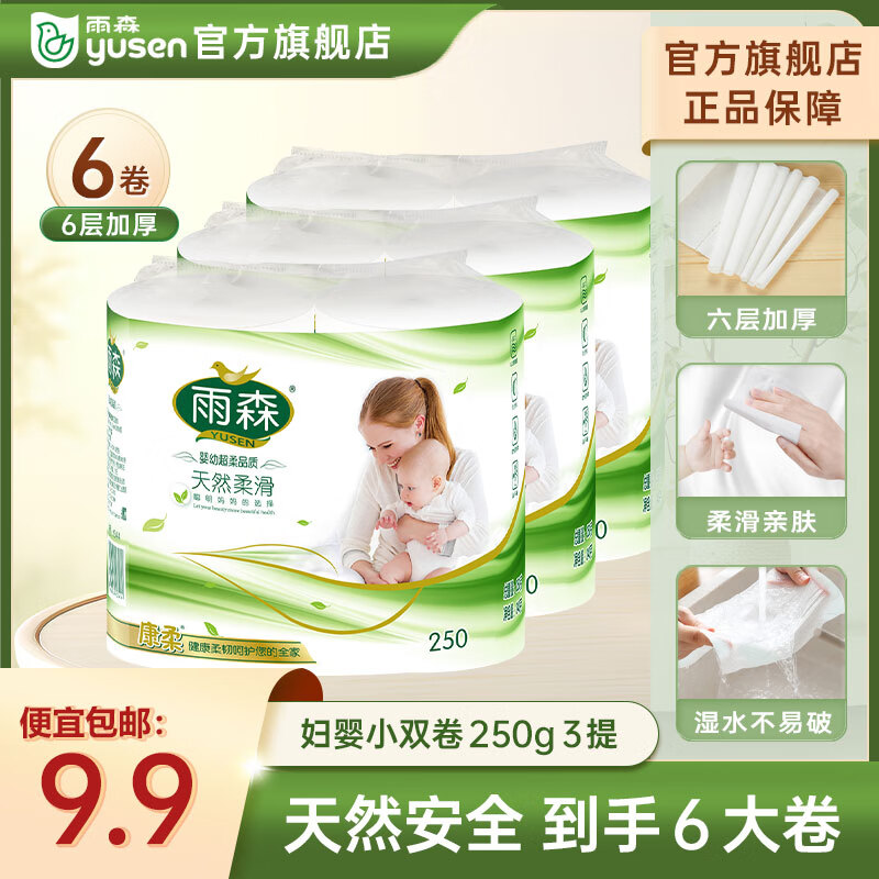 雨森(YUSEN)卷纸母婴6层加厚125g/卷 6卷