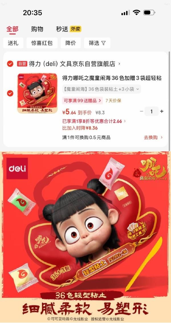 得力哪吒之魔童闹海36色加赠3袋,【5.64】