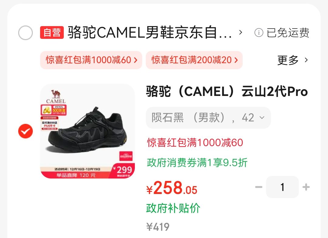 骆驼(CAMEL)云山2代Pro轻量休闲登山徒步户外鞋男情侣