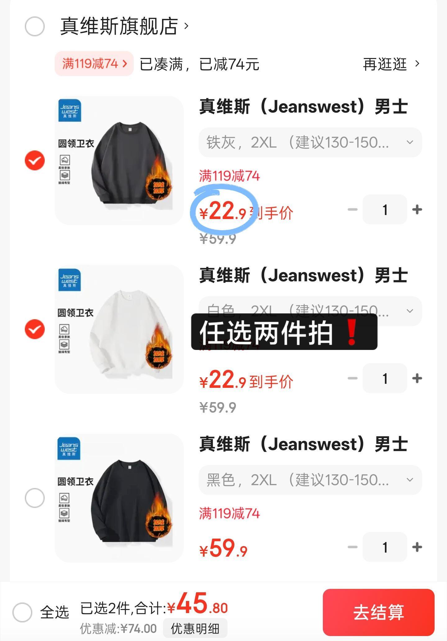 22/件!真维斯加绒卫衣