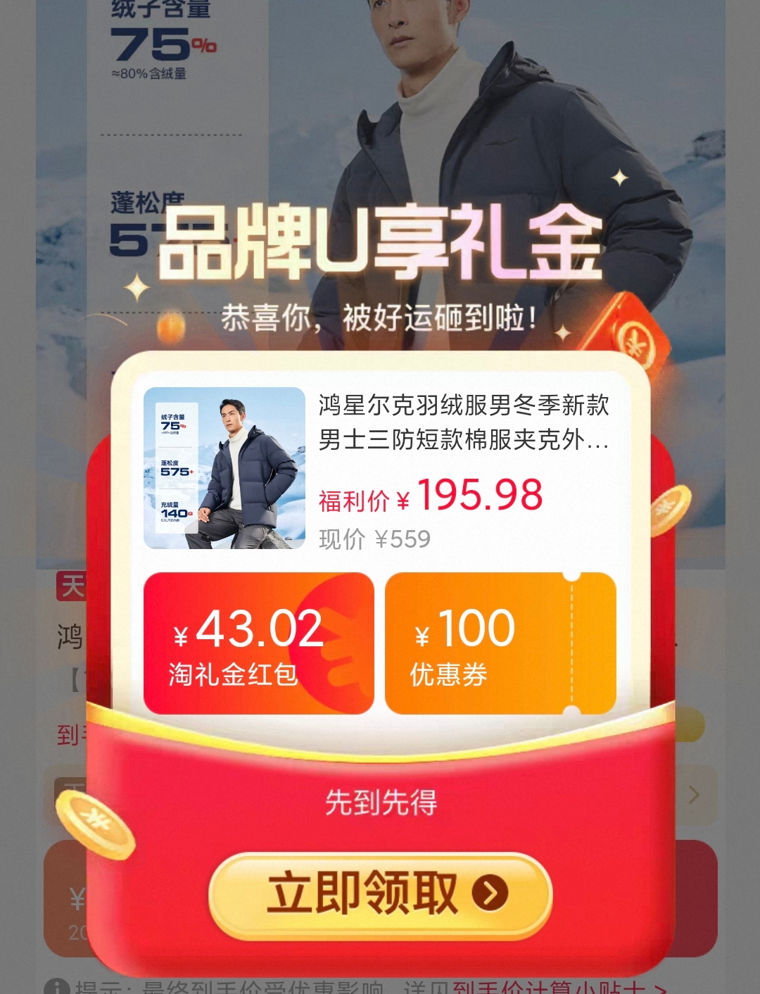 2.速度领礼金 150-170亓左右到手!! 鸿星尔克官方旗舰店好单发报员2025年12月18日 10:180举报 2.速度领礼金150-170亓左右到手!!【鸿星尔克官方旗舰店】鸿星尔克羽绒服男冬季新款男士三防短款棉服夹克男装https://m.tb.cn/h.7WMjJG3复制本消息 打开桃宝查看复制文案