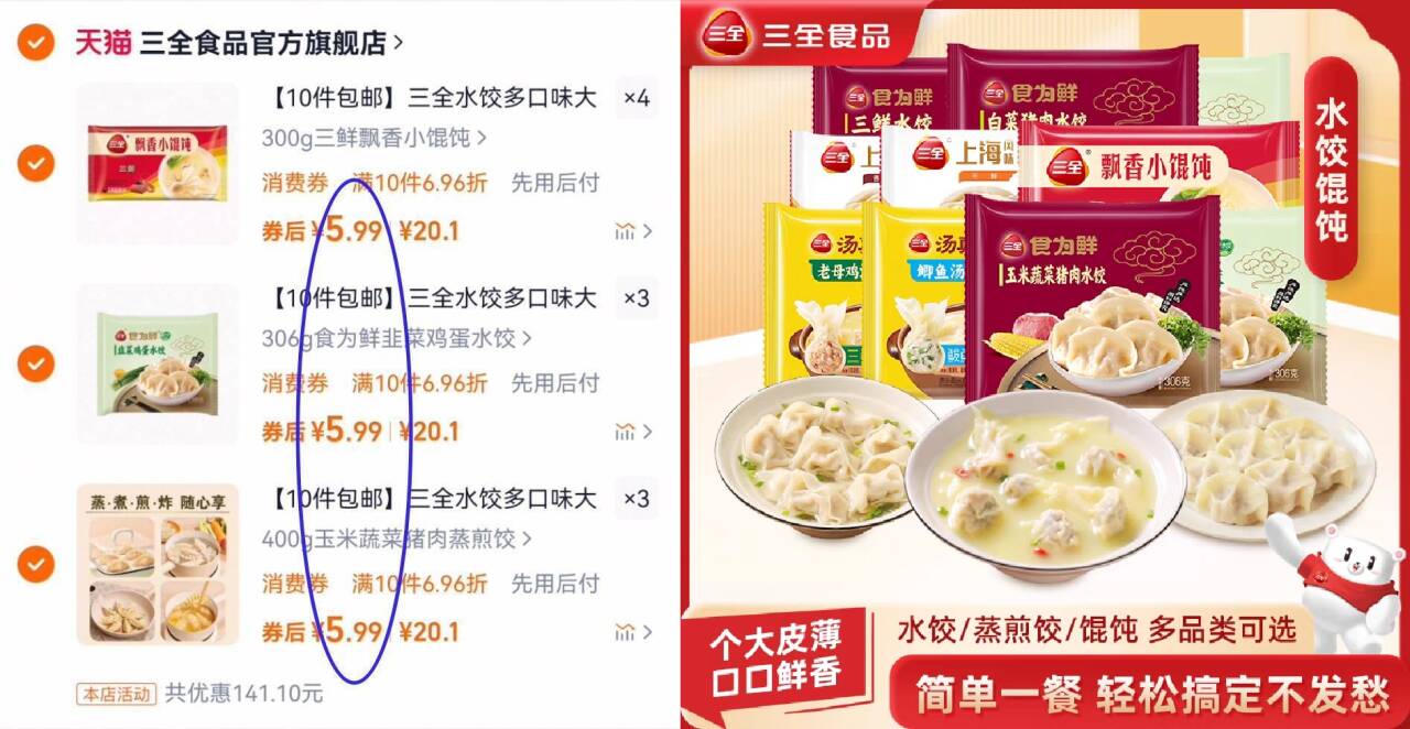 【三全旗舰店】多款馄饨水饺组合