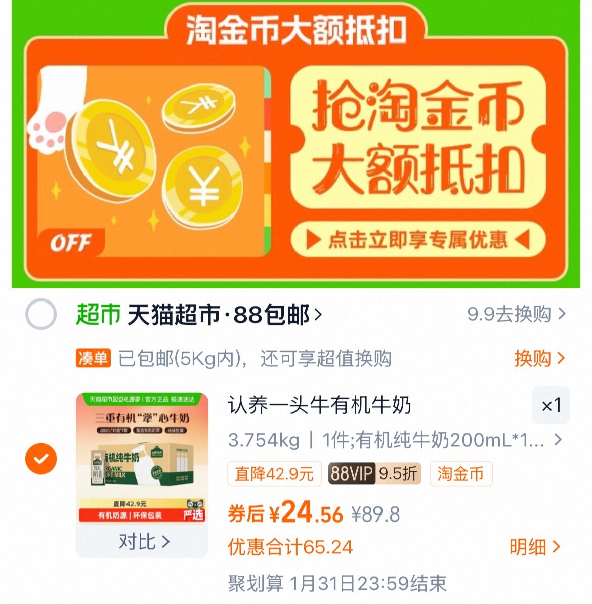 下拉详情拍 vip 24.5 1.5/盒 认养一头牛有机纯牛奶200ml*16盒 好单发报员 2025年12月18日 19:29 0 举报 下拉详情拍vip 24.5(1.5/盒)认养一头牛有机纯牛奶200ml*16盒https://m.tb.cn/h.7ecumxP 复制文案