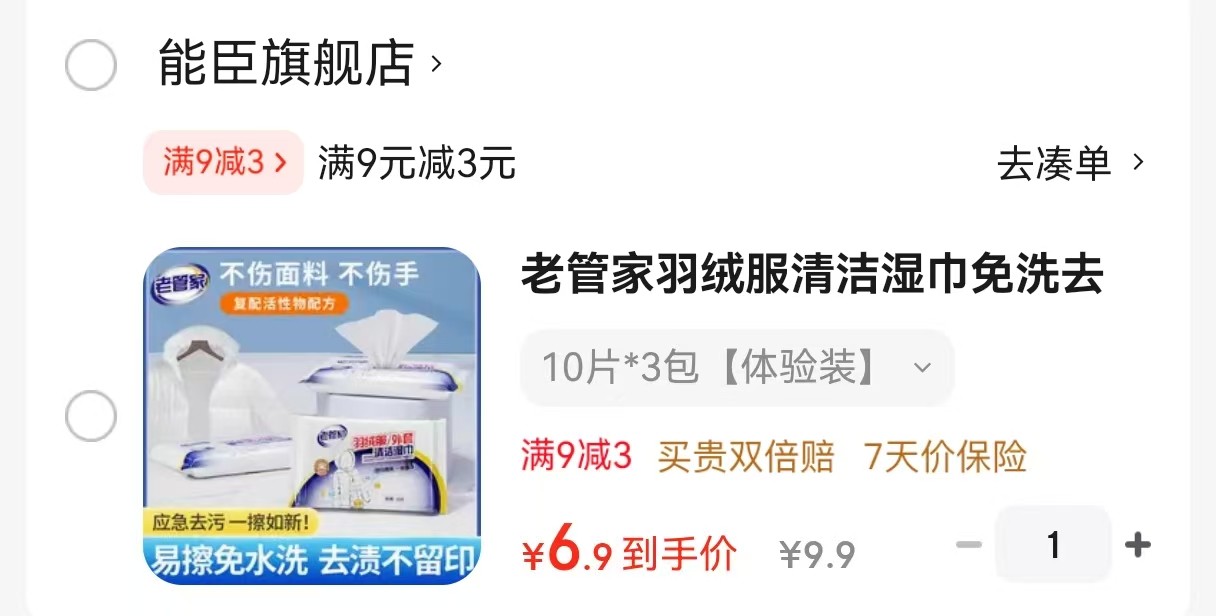 老管家 羽绒服清洁湿巾 10片*3包【6.9】