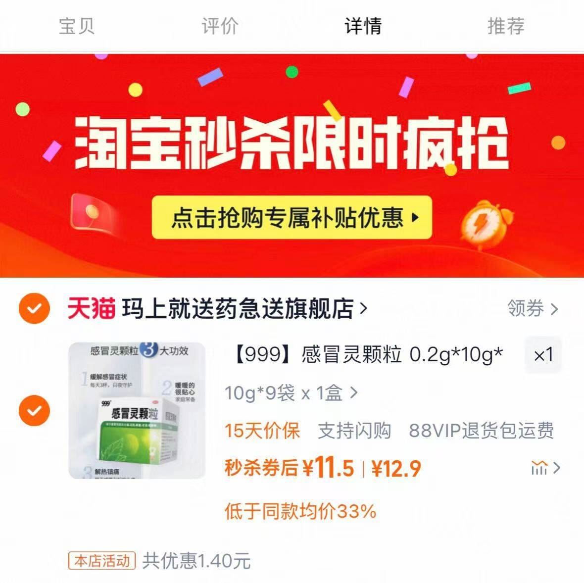 限时秒杀!三九感冒灵颗粒 直接拍10g*9袋11元.5 缓解感冒症状日夜守护好单发报员2025年12月18日 20:170举报 限时秒杀!三九感冒灵颗粒直接拍10g*9袋11元.5https://m.tb.cn/h.73Ut5cQ缓解感冒症状日夜守护家庭常备暖暖的很贴心~复制文案