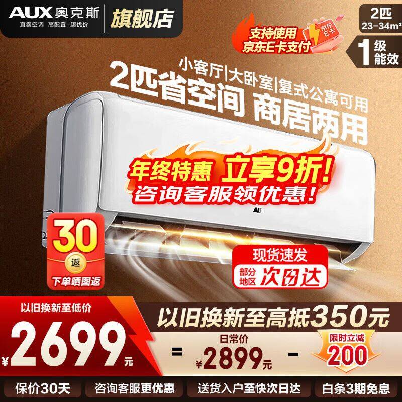 奥克斯 变频冷暖一级能效2匹 空调2672亓,晒tu 30亓