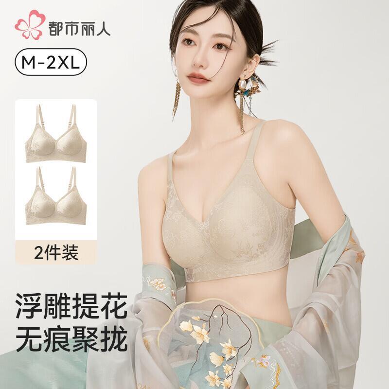 都市丽人 新中式国风浮雕提花文胸内衣2件