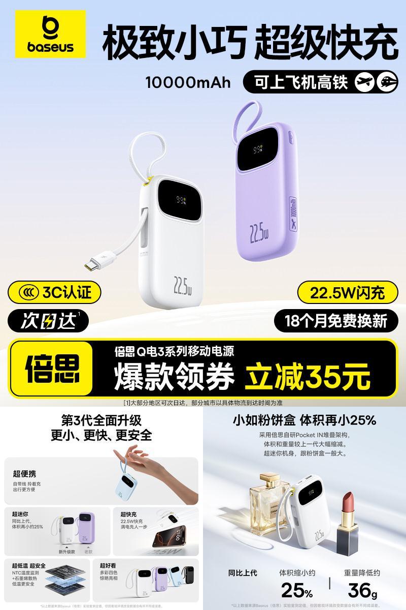80.1元 baseus倍思旗舰店 3C认证 倍思自带线快充充电宝好单发报员2025年12月18日 22:150举报 80.1元 baseus倍思旗舰店【3C认证】倍思自带线快充充电宝https://m.tb.cn/h.73hYoCK复制文案