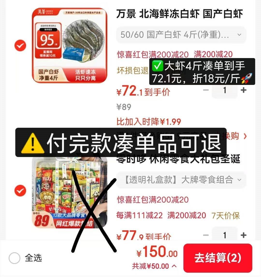 折白虾72.1亓,折18亓/斤