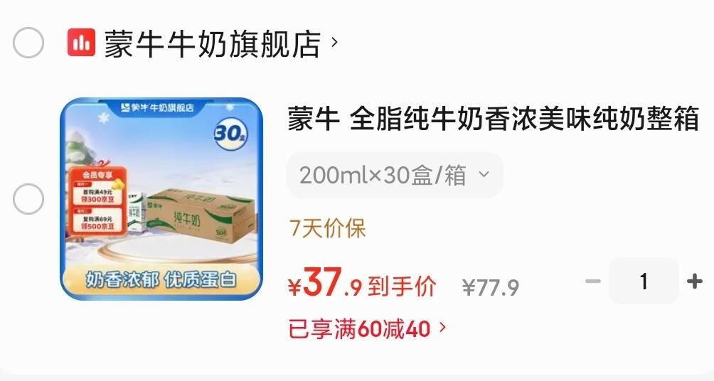 速!1.2元/盒!3.2g高蛋白 蒙牛 全脂纯牛奶整箱 200ml×30盒 官旗包邮 放心买~! 好单发报员 2025年12月18日 23:20 0 举报 速!1.2元/盒!3.2g高蛋白蒙牛 全脂纯牛奶整箱 200ml×30盒https://u.jd.com/ZGF6G2o 官旗包邮 放心买~! 复制文案