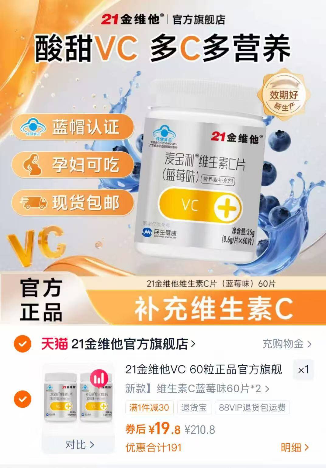 21金维他 维生素C片 19元.860粒*2瓶 折9.9/瓶,蓝帽认证 好单发报员 2025年12月19日 08:57 0 举报 21金维他 维生素C片19元.860粒*2瓶折9.9/瓶,蓝帽认证https://m.tb.cn/h.7361AOA 复制文案