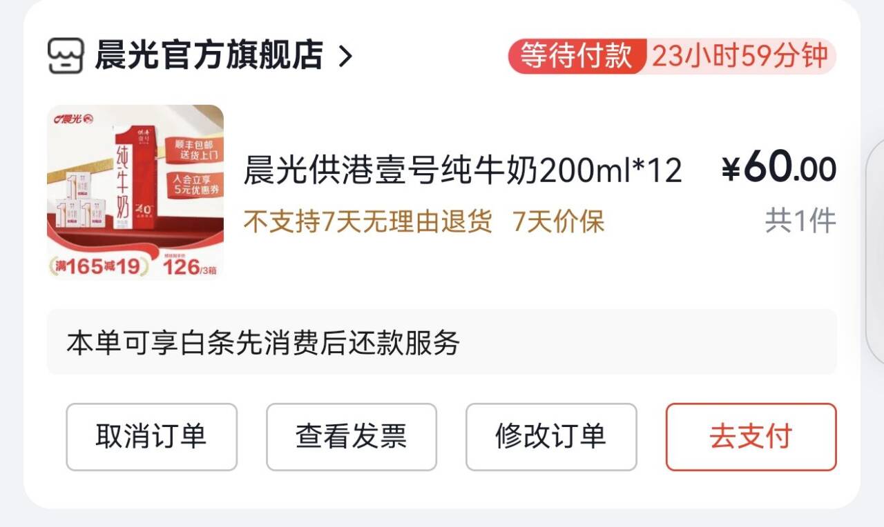 晨光供港壹号纯奶200ml 12盒*3箱,直接拍下60元! 好单发报员 2025年12月19日 09:09 0 举报 晨光供港壹号纯奶200ml12盒*3箱,直接拍下60元!https://u.jd.com/Z6526bV 复制文案