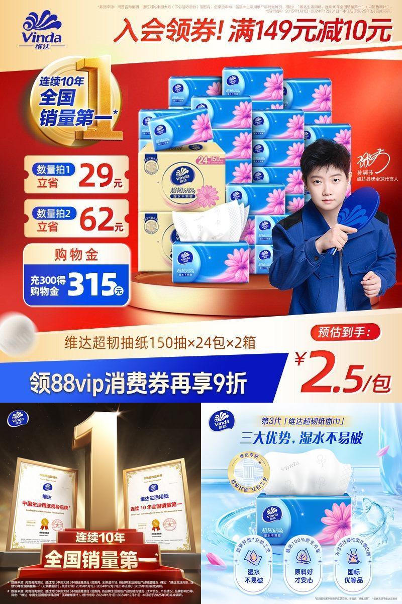 35.9元 维达集团旗舰店 进直播间享加赠 维达纸巾抽纸超韧整箱面巾纸餐巾卫生纸擦手纸好单发报员2025年12月19日 10:360举报 35.9元 维达集团旗舰店【进直播间享加赠】维达纸巾抽纸超韧整箱面巾纸餐巾卫生纸擦手纸https://m.tb.cn/h.7WBlxJN复制文案