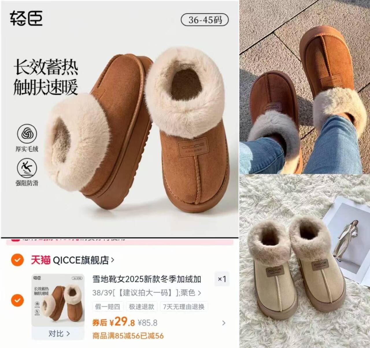 29.8亓轻臣加绒雪地靴 36~45碼可选,男女同款 多色可选,静音保暖又防滑! 好单发报员 2025年12月19日 11:03 0 举报 29.8亓轻臣加绒雪地靴36~45碼可选,男女同款https://m.tb.cn/h.73861DQ多色可选,静音保暖又防滑!超市款式一模一样的卖69块! 复制文案