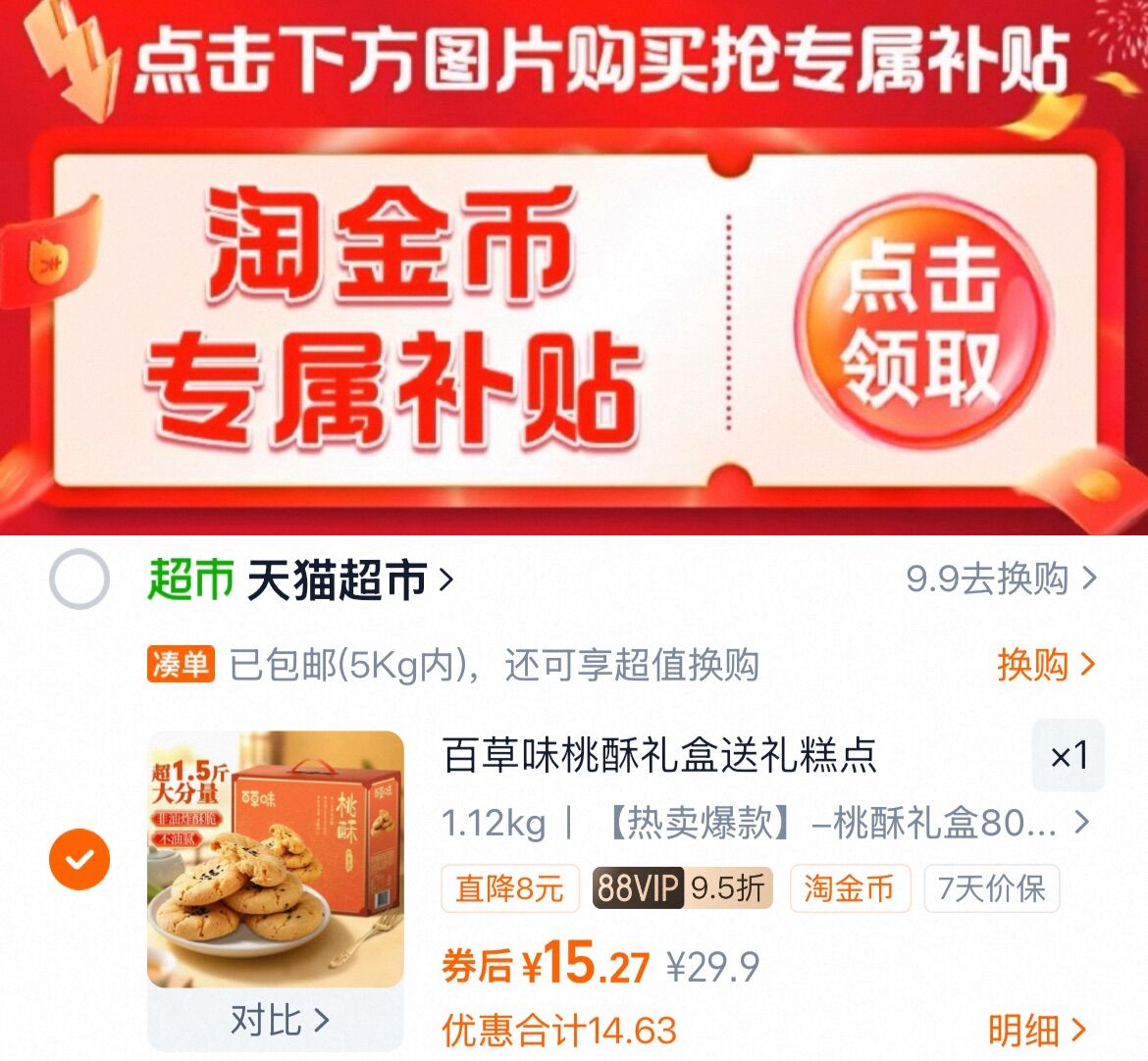 下拉详情拍 拍第一项,vip 15亓 百草味 桃酥礼盒800g好单发报员2025年12月19日 11:370举报 下拉详情拍拍第一项,vip 15亓百草味 桃酥礼盒800ghttps://m.tb.cn/h.73a3FrU复制文案