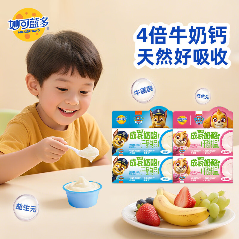 ②妙可蓝多儿童成长奶酪杯100g(4杯装)原味2盒 草莓味2盒