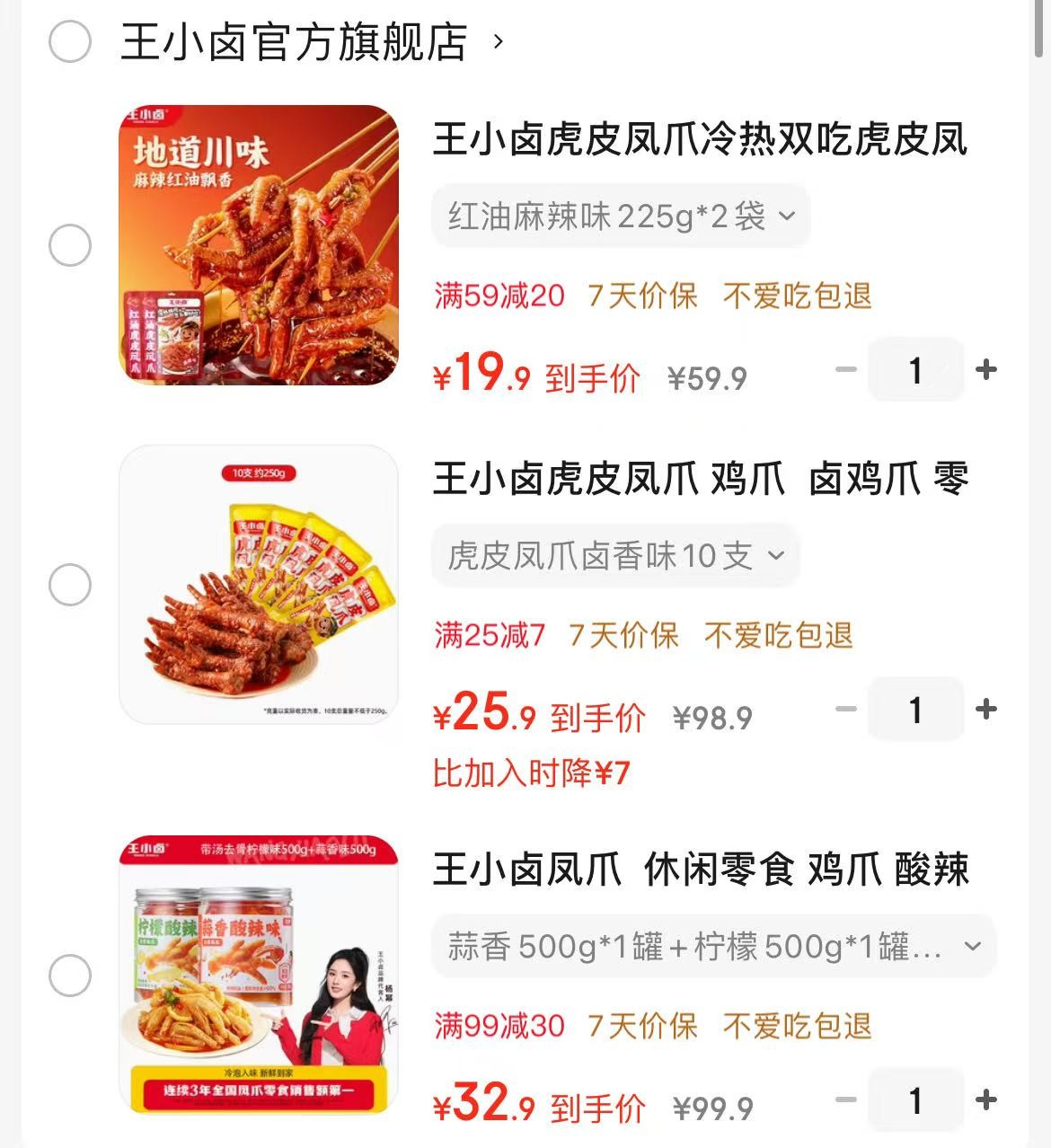 ② 领25-7 https://coupon.m.jd.com/coupons/show.action?key=cemdc9sco0a84aa3b78e09f226b6d98d&roleId=1744070900&to=m.jd.com王小卤 虎皮凤爪 卤香味10支【25.9】https://u.jd.com/ZD5f4PT