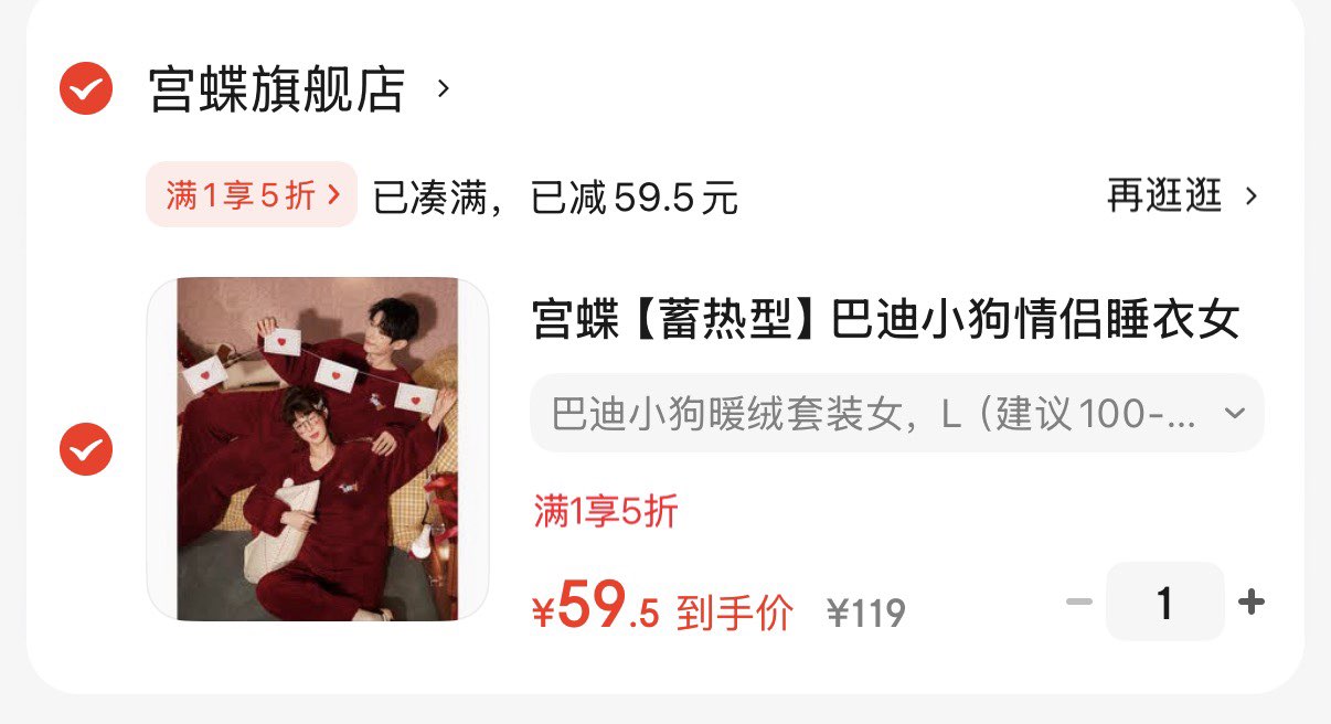 宫蝶暖绒睡衣套装 59.5亓