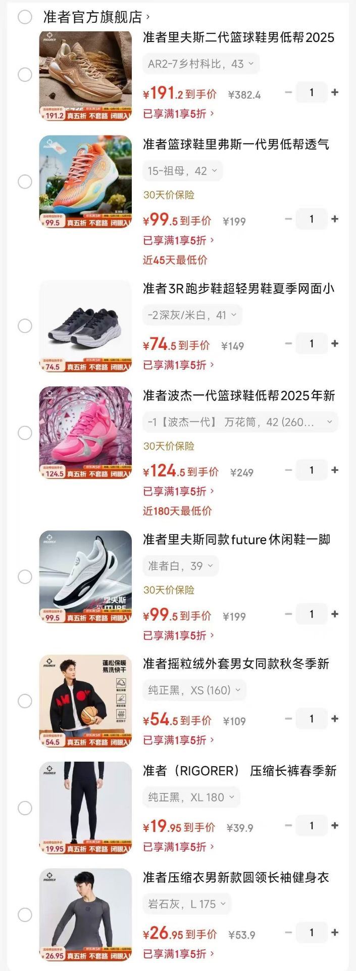⑦压缩长裤 19元.9元