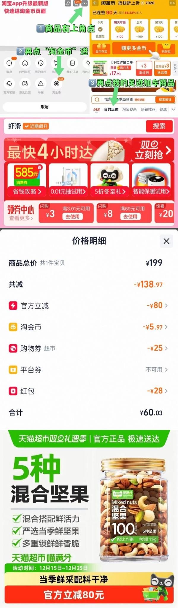 淘金币页面我的足迹加购