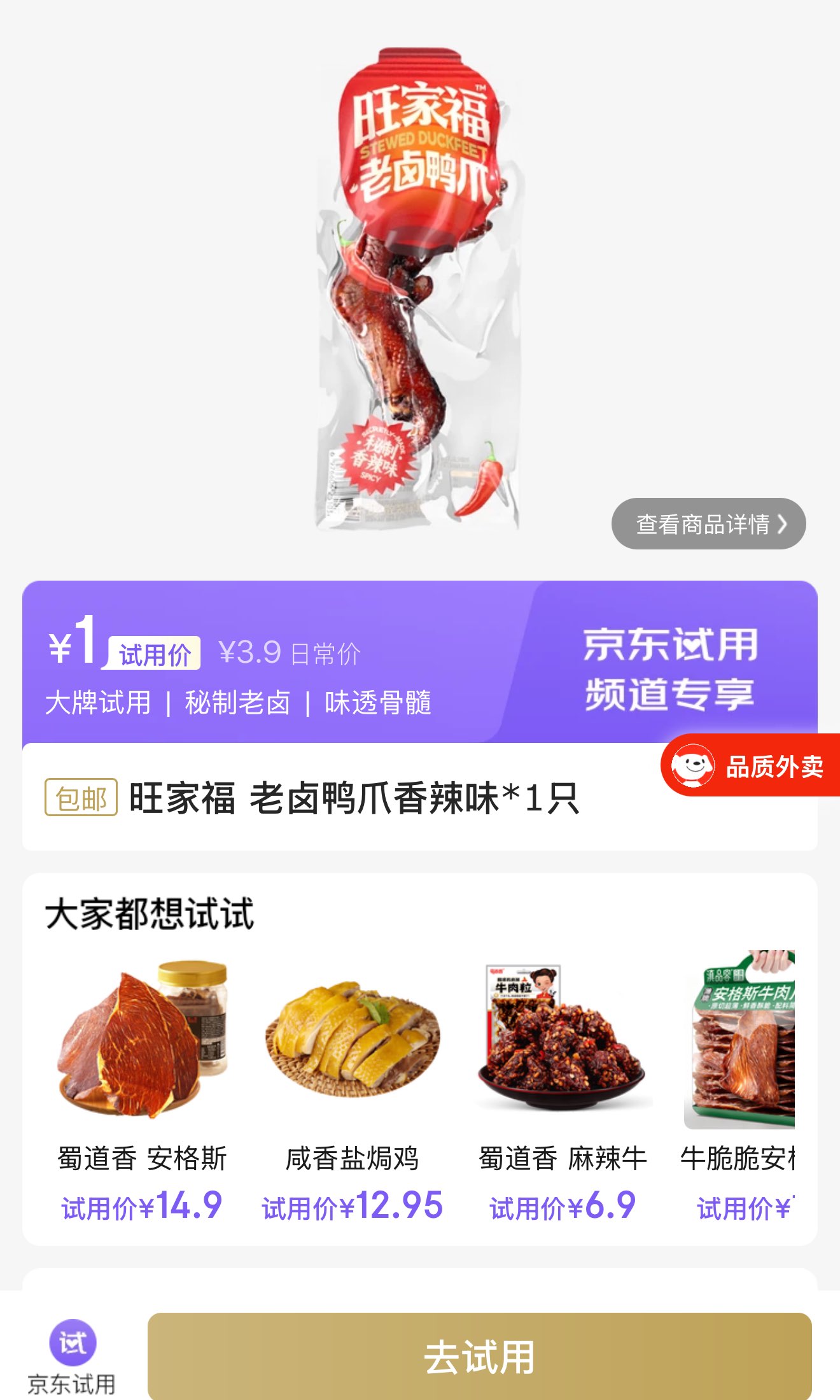 旺家福 老卤鸭爪香辣味 1袋 1yuan