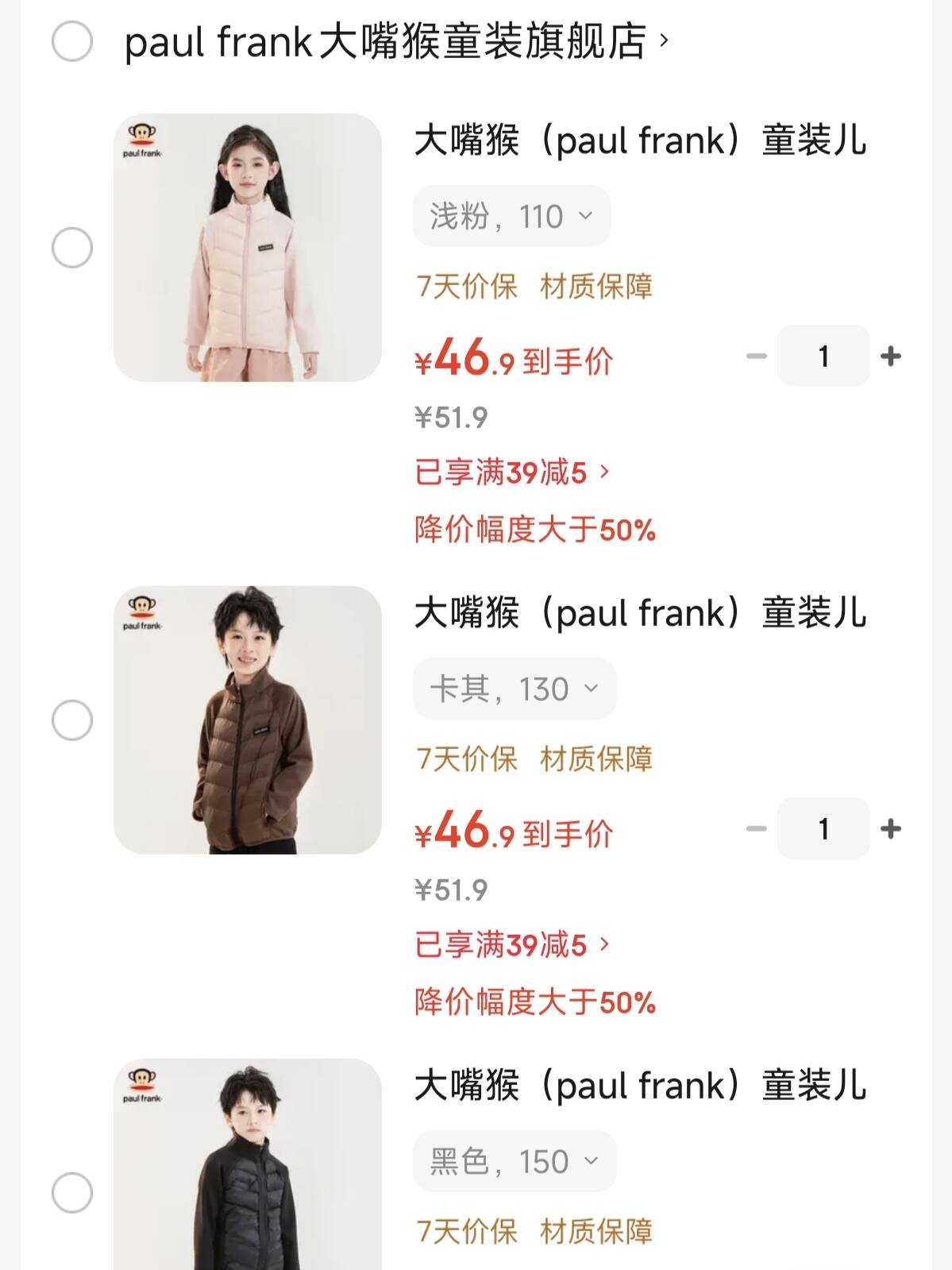 大嘴猴paul frank旗舰店 儿童羽绒服轻薄外套46元.9好单发报员2025年12月19日 18:440举报 大嘴猴paul frank旗舰店儿童羽绒服轻薄外套46元.9https://u.jd.com/ZGoIhwf复制文案