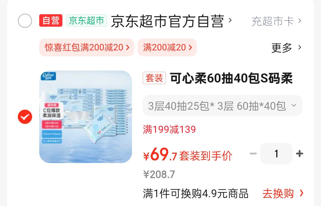 可心柔婴儿柔纸巾组合 60抽*40包加 40抽*25包 69.7好单发报员2025年12月19日 19:290举报 可心柔婴儿柔纸巾组合60抽*40包加 40抽*25包69.7https://u.jd.com/ZDo7OID 复制文案