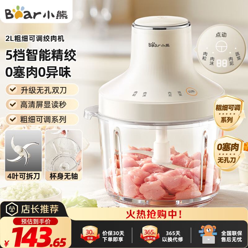 先领100-20卷 自营 小熊 绞肉机2L 双刀 跳APP叠国补plus到手119.47元