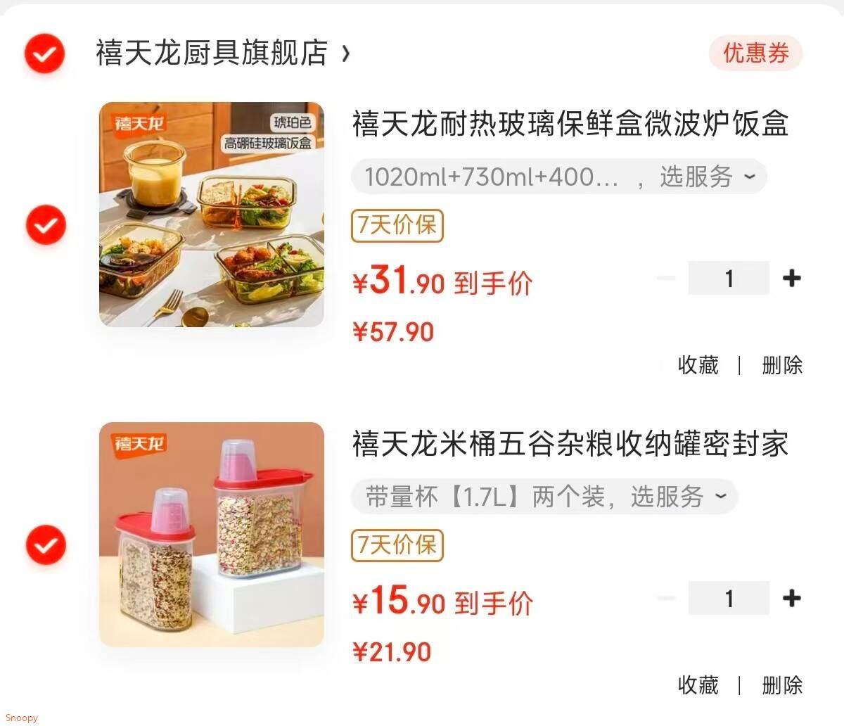 禧天龙 米桶五谷杂粮收纳罐 带量杯1.7L两个装【15.9】