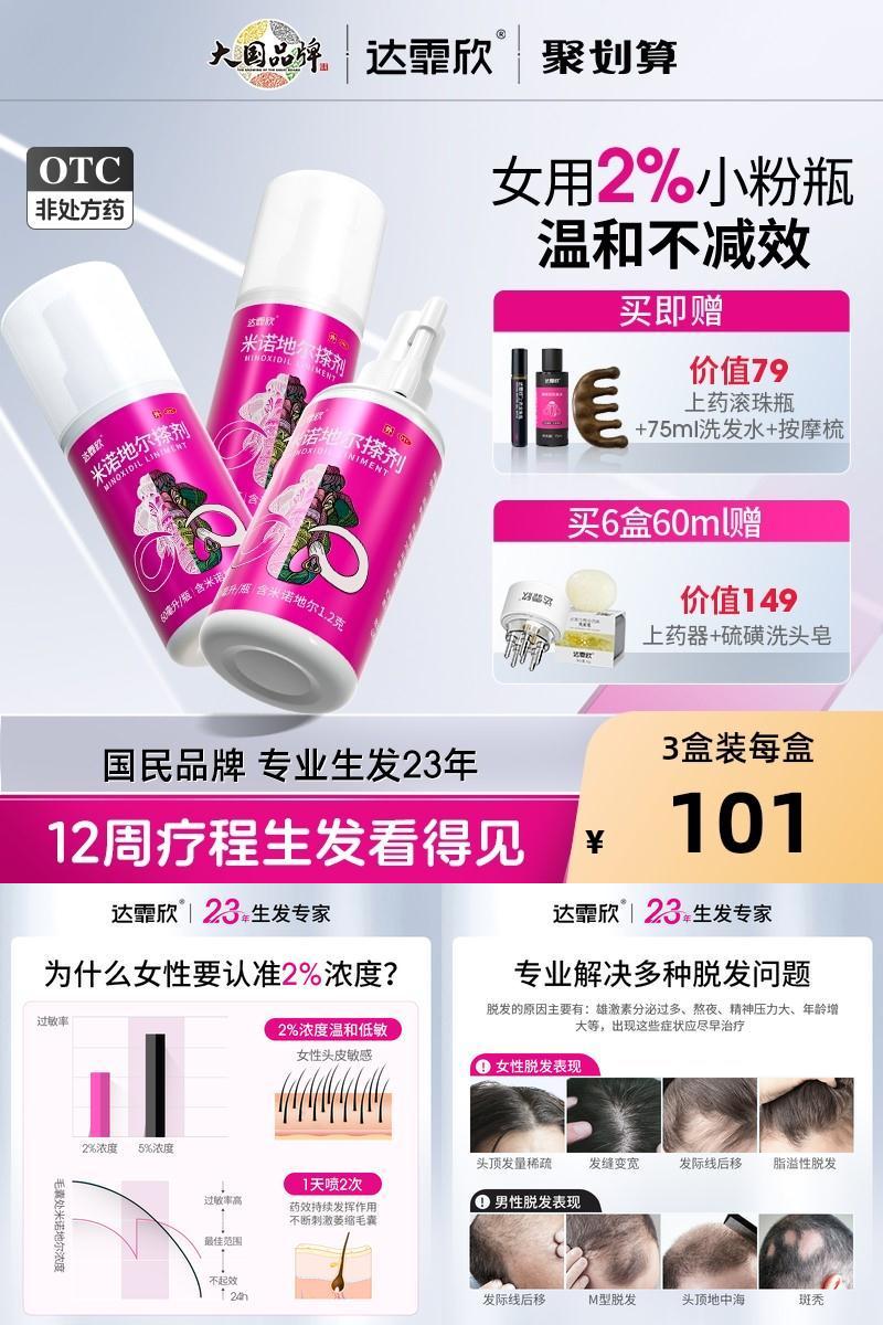 404元 阿里健康大药房 自营 达霏欣 米诺地尔搽剂2%*60ml*1瓶/盒?女性2%小粉瓶