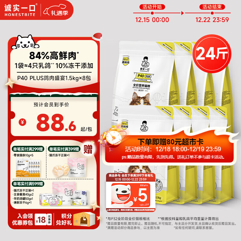 诚实一口p40plus鸽肉猫粮1.5kg*8袋