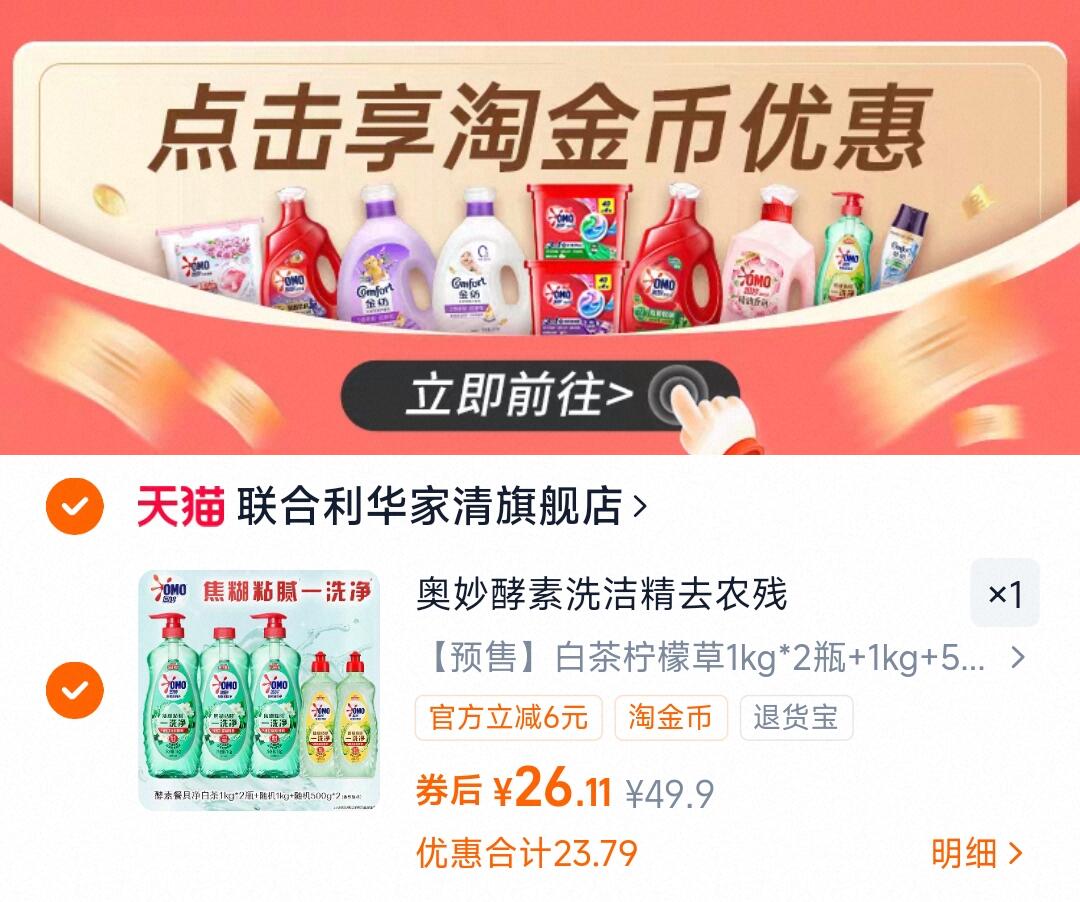 下拉详情拍,26亓 3.2/斤 奥妙洗洁精1kg*3 500g*2瓶好单发报员2025年12月20日 08:380举报 下拉详情拍,26亓(3.2/斤)奥妙洗洁精1kg*3 500g*2瓶https://m.tb.cn/h.7eb6leS复制文案