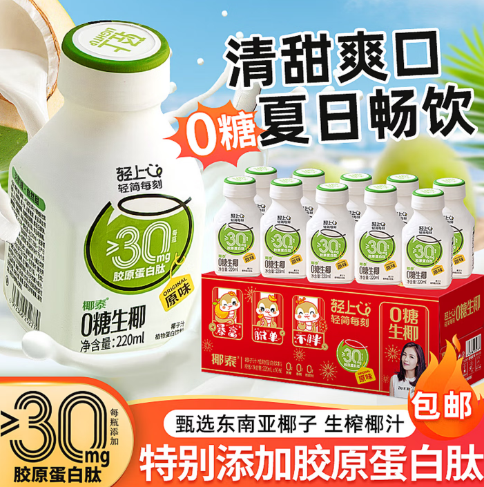 轻上 0糖生椰原味220ml*10瓶,19.9亓