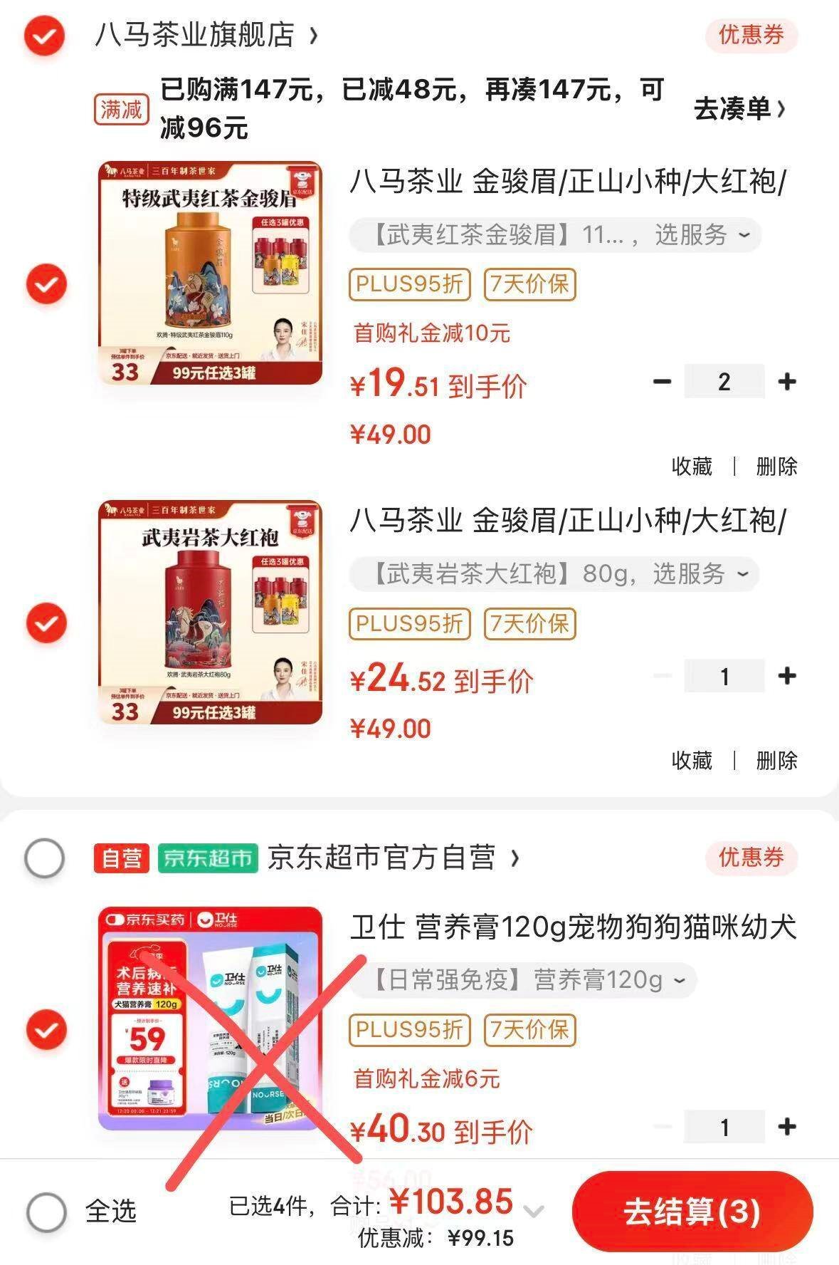 大牌茶叶低忦速 Plus领200-25补帖卷 八马茶业 金骏眉110g 选3件
