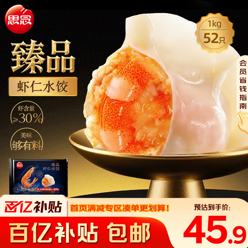 【JD自营】思念 虾饺臻品虾仁水饺 1kg/袋50只