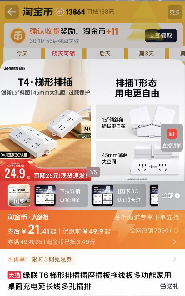 21.4亓 下拉叠淘金币 绿联T6梯形排插插座接线板 0.5米★巴掌小机身★4位5孔好单发报员2025年12月20日 11:150举报 21.4亓 下拉叠淘金币绿联T6梯形排插插座接线板0.5米★巴掌小机身★4位5孔https://m.tb.cn/h.7eQNNGpT4·梯形 四孔位新国标3C认证复制文案