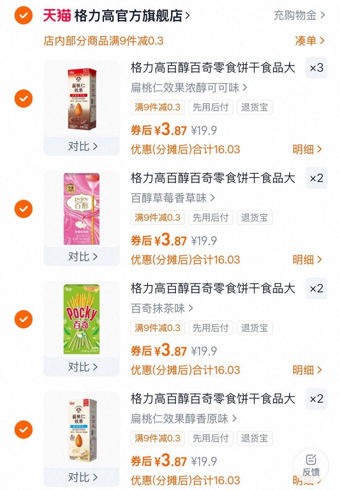 拍9件,3.8/盒 格力高 百醇百奇饼干任选