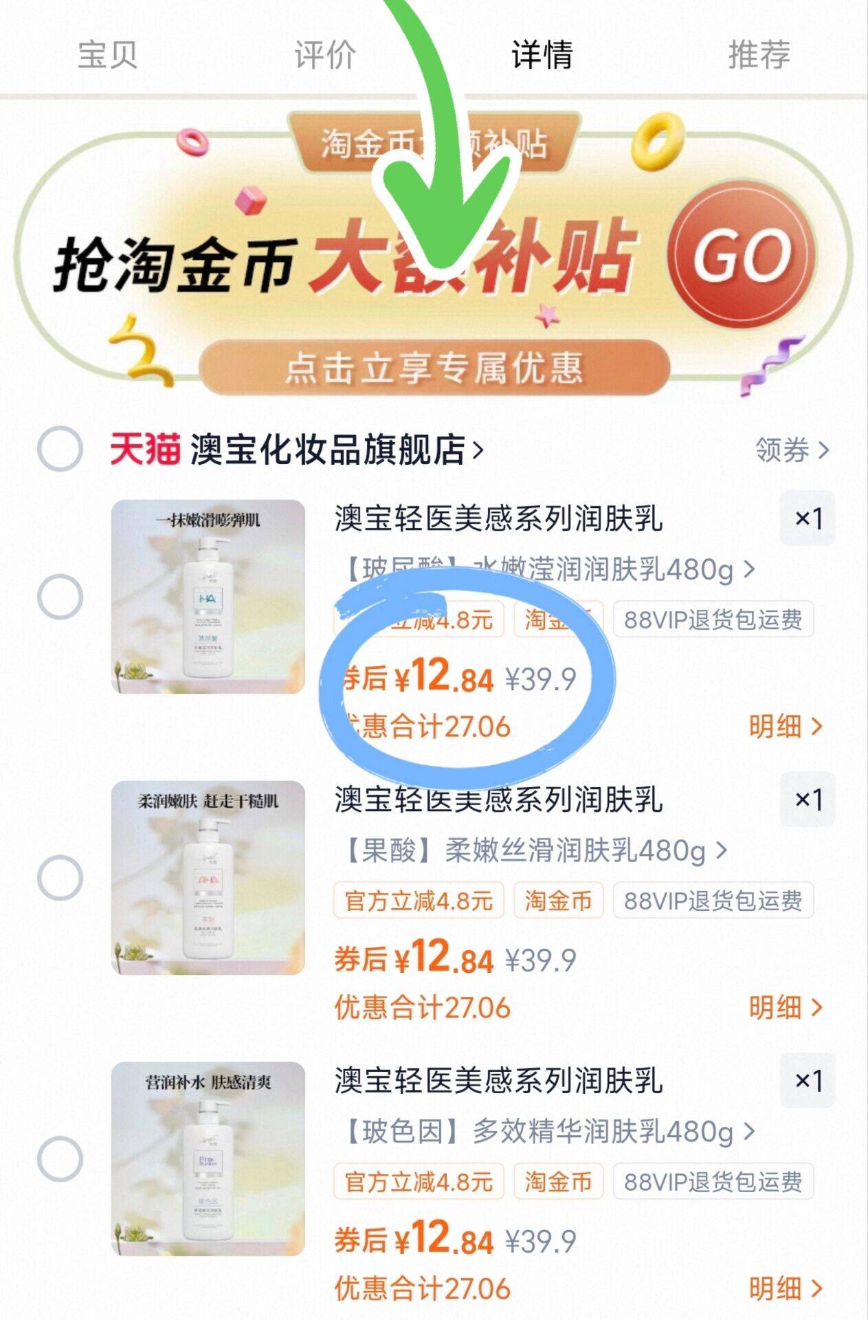 澳宝轻医美感润肤乳480g 下拉抵琻币12元.8 三款任选好单发报员2025年12月20日 13:210举报 澳宝轻医美感润肤乳480g下拉抵琻币12元.8 三款任选https://m.tb.cn/h.7VR5s1r复制文案