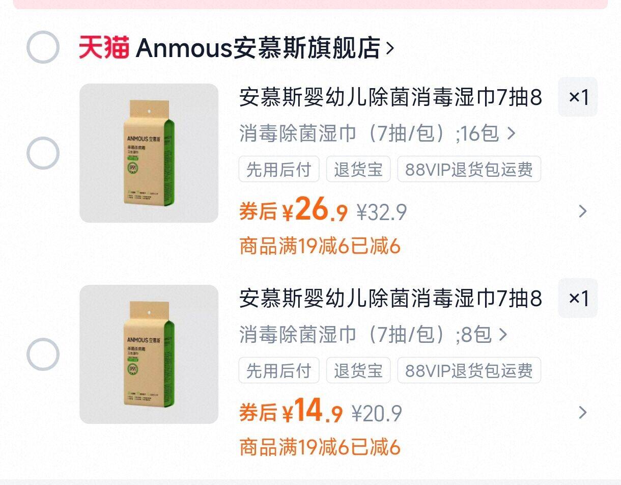 安慕斯消毒除菌湿巾7抽/包 8包14元.9,16包26元.9 好单发报员 2025年12月20日 15:29 0 举报 安慕斯消毒除菌湿巾7抽/包8包14元.9,16包26元.9https://m.tb.cn/h.7eMJsx0 复制文案