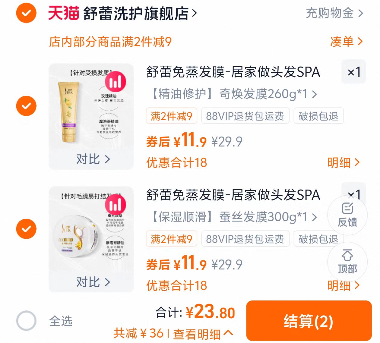 23.8元 拍2件 舒蕾旗舰店 舒蕾蚕丝柔顺免蒸发膜任选2件好单发报员2025年12月20日 15:450举报 23.8元 拍2件【舒蕾旗舰店】舒蕾蚕丝柔顺免蒸发膜任选2件https://m.tb.cn/h.73w93K3复制文案