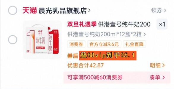 35.1好价需叠88消费券 供港壹号纯牛奶12盒*2箱 好单发报员 2025年12月20日 18:01 0 举报 35.1好价需叠88消费券供港壹号纯牛奶12盒*2箱https://m.tb.cn/h.7VNb0p6 复制文案