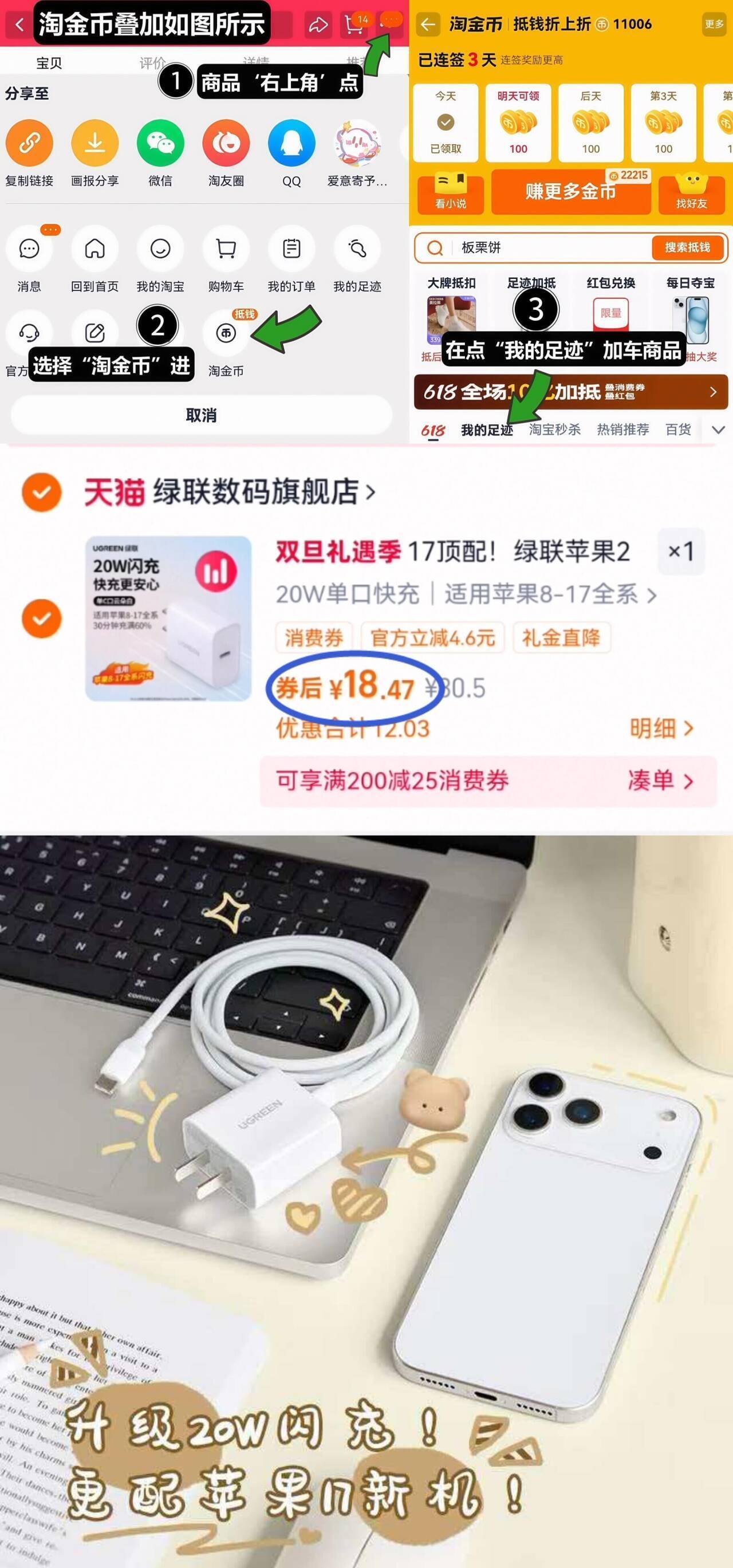 18亓速无券按步骤拍 啪愿圿30.5亓选项!叠2.4淘金币 绿联 20W氮化镓闪充充电头好单发报员2025年12月21日 17:150举报 18亓速无券按步骤拍啪愿圿30.5亓选项!叠2.4淘金币【绿联】20W氮化镓闪充充电头~如图右上角叠“淘金币”拍下~https://m.tb.cn/h.7VYfttg苹果都不送充电头了 备上啊复制文案
